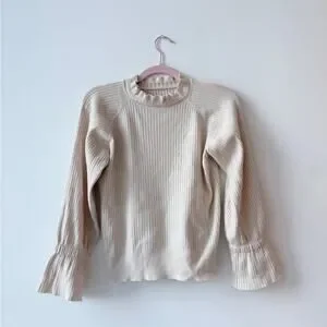 Cream Ribbed Sweater with Ruffle Details