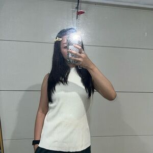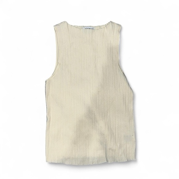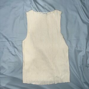 Elevate your wardrobe with this chic cream ribbed tank top. Perfect for layering or wearing on its own, this versatile piece adds a touch of elegance to any outfit. Reminds me of pleats please/issey miyake