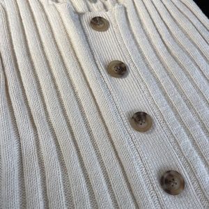 Other Details: Ribbed sweater-like material. Tortoise Buttons(not functional)