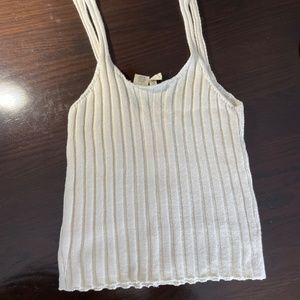 Cream Ribbed Tank with Button Detail
