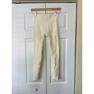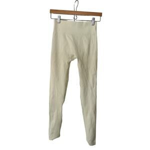 Likely a size XS/S. No tags for size, materials, or brand Quite thick and stretchy 24" waist, 28" hip, 9.5" rise, 23" inseam