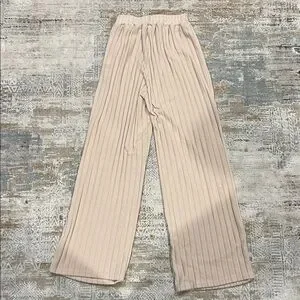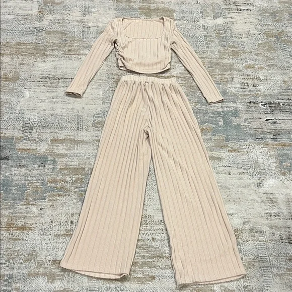 Step out in style with this elegant cream ribbed two-piece set. Perfect for any occasion, this set offers both comfort and sophistication. Excellent condition.