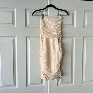 Cream Rouched Bodycon Dress