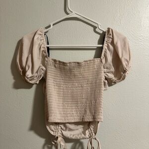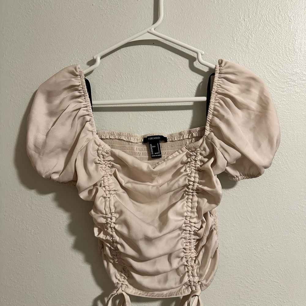 Cream Ruched Blouse Top