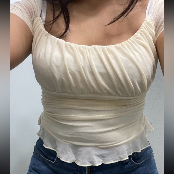 Cream Ruched Top