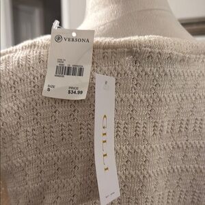 Elegant cream open knit top with a stylish ruffle hem. Perfect for any occasion.