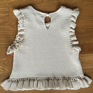 Adorable cream knit top with charming ruffle details. Perfect for adding a touch of elegance to any outfit.