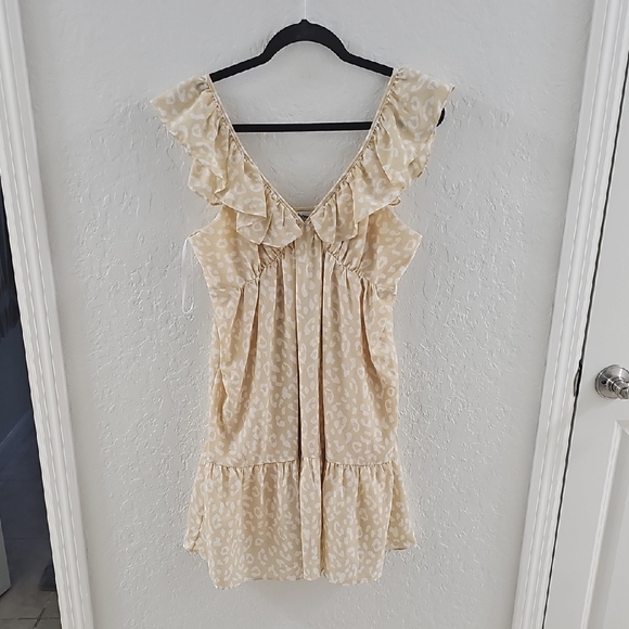 Stylish cream mini dress with ruffle details. Perfect for any occasion. Juniors/women size large