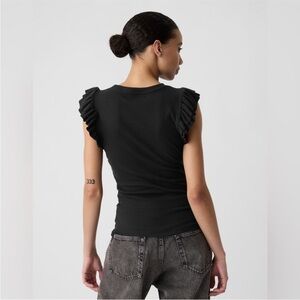 Elegant cream top with ruffle sleeves. Perfect for any occasion.