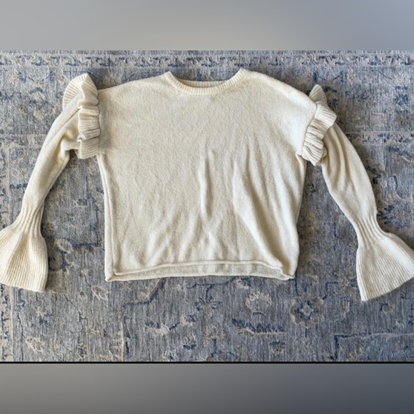 Only worn a few times. Cream sweater with ruffle detailing. Size large