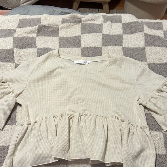 Charming cream blouse with playful ruffles. Ideal for casual outings.