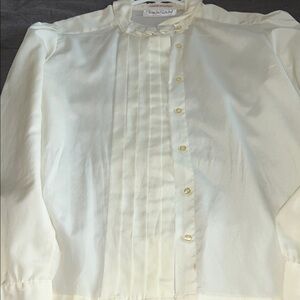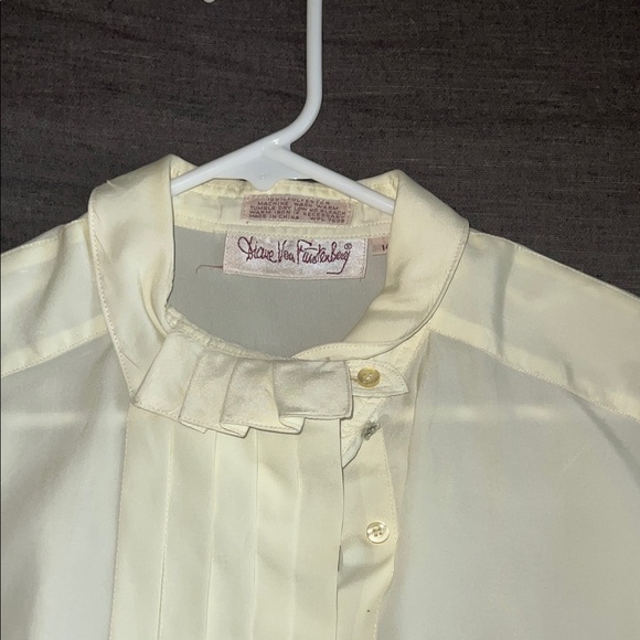 Vintage Diane Von Furstenberg Elegant light yellow blouse with ruffled collar. Perfect for formal occasions. Truly a statement piece, a timeless piece.