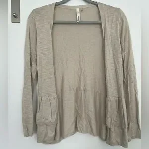 Lightweight, cream cardigan in wonderful condition. It is barely worn and ready for a new home! It’s perfect for work, outings, or just to wear around the house.