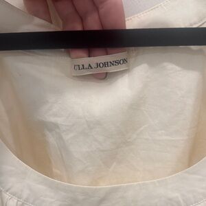 Charming cream dress with ruffled sleeves and hem. Zips in the side