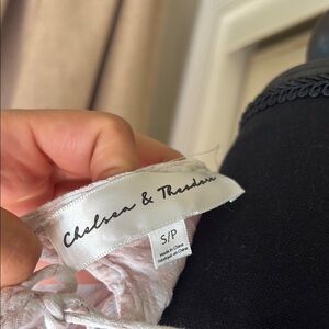 This cream blouse showcases charming flutter sleeves with a ruffled design, offering a relaxed and stylish fit. The top's soft fabric and elegant style make it a versatile addition to any wardrobe. Chelsea and theordore brand