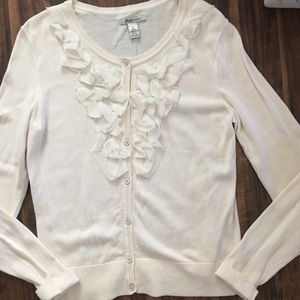 Cream Ruffled Front Cardigan-S