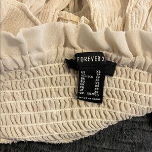 Worn once to a music festival. Chic mini skirt with layered ruffles. Smocked waist for a snug fit. Perfect for casual outings.