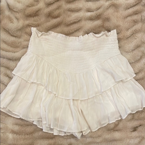 Chic cream mini skort with ruffled layers. Perfect for a stylish look.