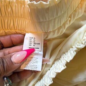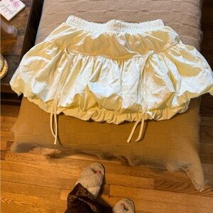 Chic cream ruffled skirt with elastic waistband. Perfect for casual outings. It’s a puff skirt like a balloon skirt and it’s never been worn.
