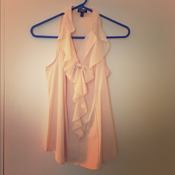 Cream collars tank top with ruffles that flow down the front of the shirt. Cute for under a blazer at work!