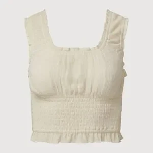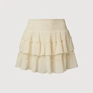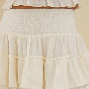 Stylish cream two-piece set with ruffled details. Perfect for a chic look. Skirt and top! Never worn. Runs small