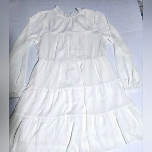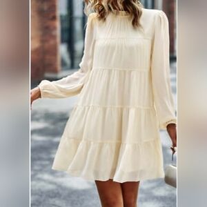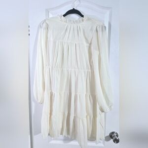 Cream Sheer Long Sleeve Ruffle Mick Neck Tiered Dress Size Small