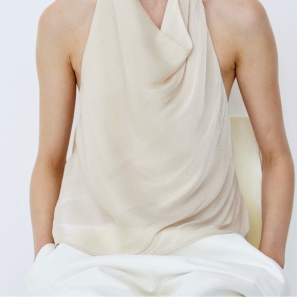 Stylish cream halter top with a draped design.