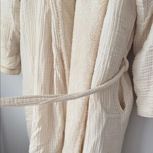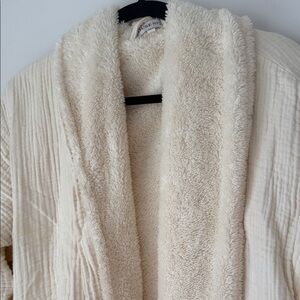 Luxurious cream sherpa robe. Soft and cozy for ultimate comfort. In pretty good condition. Tiny pen mark in sleeve as shown
