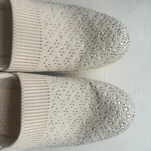 Cream Skechers Martha Stuart line size 7 slip-on sneakers with silver studded details