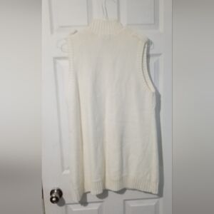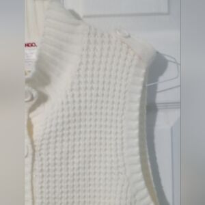 Stylish cream sleeveless sweater vest with button-up front. Perfect for layering.