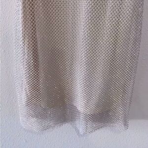 This cream mini dress features a chic slip style with delicate spaghetti straps, perfect for a cocktail night out. Its sleeveless design and luxurious fabric offer a sophisticated and elegant look. Fishnet material adds just the right amount of flare for a night out, homecoming dress, or wedding guest attire.