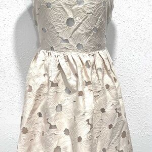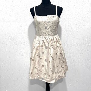 Cream Spaghetti floral mini Strap Sundress with Bow M