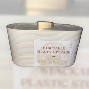 Organize your space with this elegant cream stackable plastic storage box. Perfect for keeping your accessories tidy and accessible.