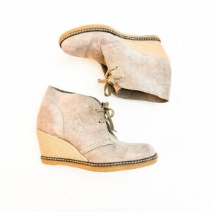 Cream Suede Leather Platform Wedge Lace Up Bootie Size 7
