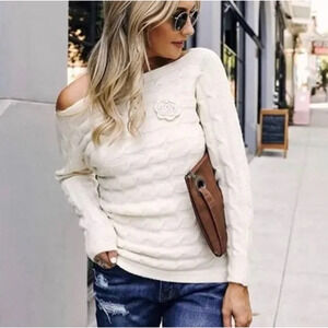 Cream Sweater Flower Pin Small / Medium NWT Military Hippie