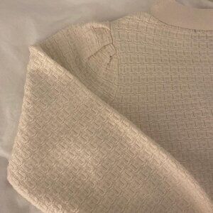 Old money style, cream, nude knit sweater with gold buttons by "Truth by Republic"