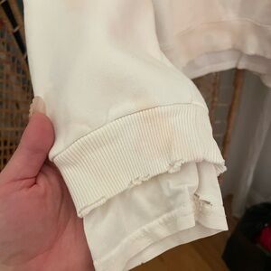 Cozy cream sweatshirt with a classic design. Tie dyed and destructed.