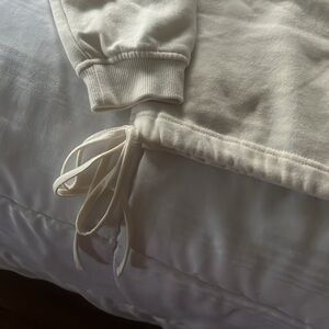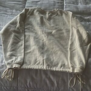 Stay cozy and stylish with this cream sweatshirt featuring a unique drawstring hem. Perfect for casual outings.