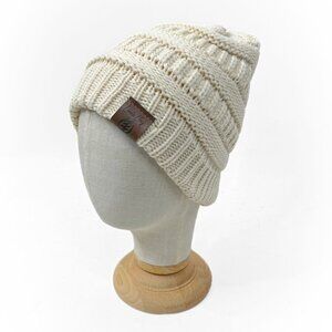 Cream/ Tan Beanie Hat Skully Women's Slouchy Thick Satin Lined Cap