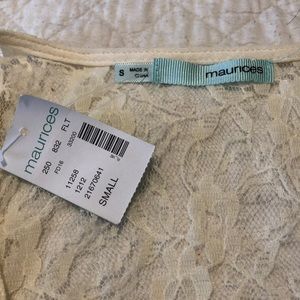 Cream tank top with lace detail. New with tags