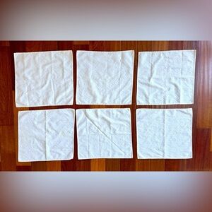 Set of 6 cotton dinner napkins. Lightly used. Some minor staining. Freshly laundered.