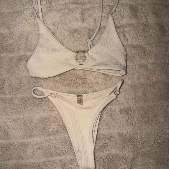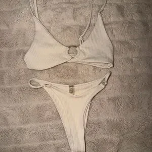 Soft cream ribbed top with vertical textured pattern. Lightweight knit fabric. Simple crew neckline. Versatile neutral piece for layering.