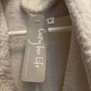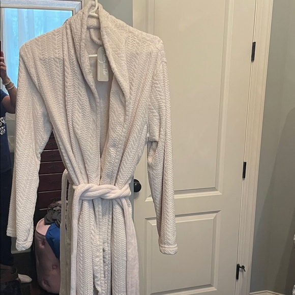 Luxurious cream robe. Features a textured pattern. Soft and comfortable.