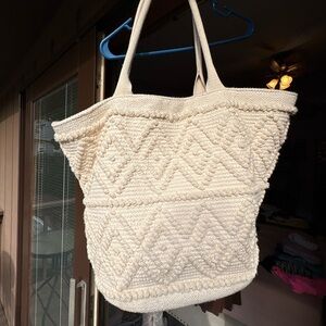 Elevate your style with this elegant cream tote bag. Perfect for any occasion, its textured design adds a touch of sophistication to your ensemble. Purchased at target used once or twice. Very spacious. Please look at all pictures before purchasing and ask me any questions. Offers accepted !!