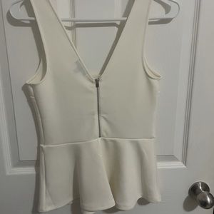 Slightly off white/cream top with mesh over cleavage and zipper in back