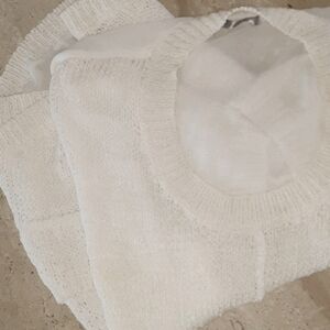 Pre-owned Cream nubby knit front with sheer chiffon back