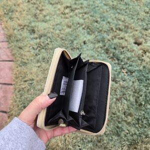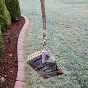 This cream-colored clutch features a nostalgic travel-inspired design, perfect for adding a touch of wanderlust to your ensemble. The wristlet strap ensures easy carrying, making it an ideal accessory for any occasion. NWT.