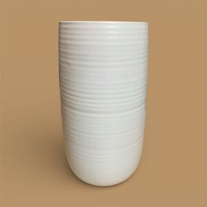 Beautiful white cream vase featuring a charming red heart design on one side.