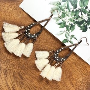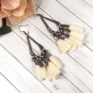 Cream Vintage Boho Tassel Drop Earrings