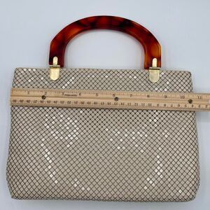 Cream Vintage Metal Mesh Handbag with Tortoise Handle Retro 70's Mob Wife Glam